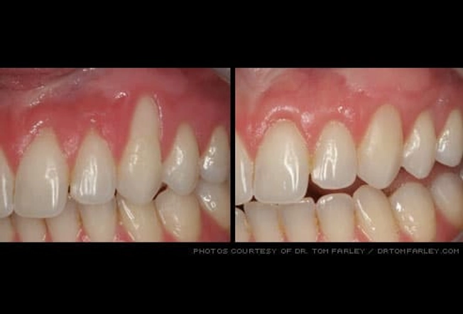 Gum reshaping can improve a "gummy" smile in which teeth appear too short, or where the gum line appears uneven. A small amount of gum tissue -- and excess bone tissue if necessary -- is removed and contoured to expose more of the teeth. This procedure can be done to one tooth to even the gum line, or to several teeth to expose a natural, broad smile.